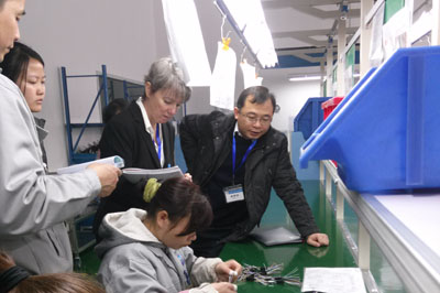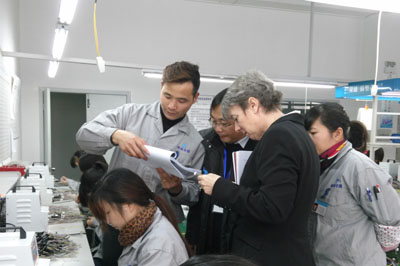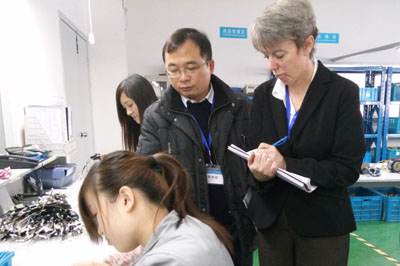 在品質(zhì)部經(jīng)理胡俊的陪同下,客戶參觀了各生產(chǎn)車間、倉(cāng)儲(chǔ)現(xiàn)場(chǎng)、辦公區(qū)域等。胡經(jīng)理認(rèn)真地向客戶介紹產(chǎn)品實(shí)現(xiàn)的每一道工序,并讓客戶親自動(dòng)手檢驗(yàn)。對(duì)關(guān)鍵過程尤為仔細(xì),查閱作業(yè)指導(dǎo)書、過程檢驗(yàn)記錄等。客戶也非常認(rèn)真地向我們了解各種產(chǎn)品的性能和用途,不停的記錄,并連聲稱贊“Very Good!”。