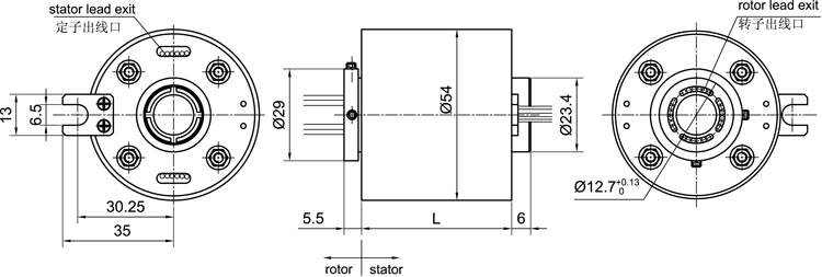 ■ 因我們的帽型滑環轉動扭矩很小,因此可將內圈部分導線保護好后直接用于轉動或固定;