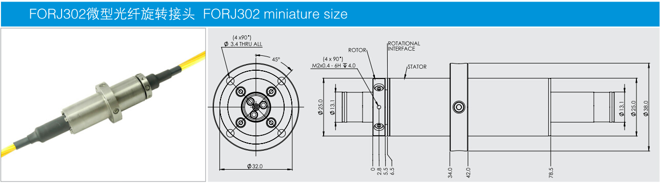 FORJ302光纖旋轉(zhuǎn)接頭用于單模或多模系統(tǒng)的光電旋轉(zhuǎn)連接;完全的雙向旋轉(zhuǎn);與現(xiàn)有的電氣滑環(huán)設(shè)計相融合;全封閉結(jié)構(gòu);能為客戶量身定制所需要的光纖滑環(huán)
