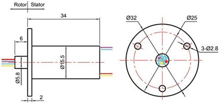 ■ 因我們的帽型滑環轉動扭矩很小,因此可將內圈部分導線保護好后直接用于轉動或固定
